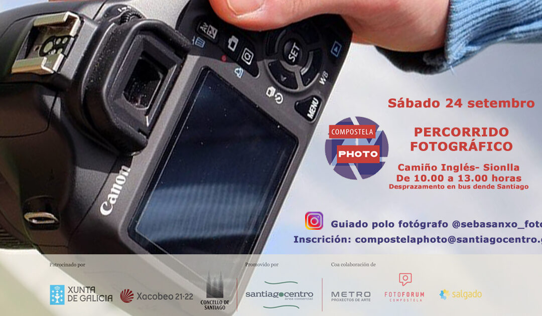 O Festival de fotografía urbana Compostela Photo organiza para este sábado 24 de setembro unha saída para todas as persoas amantes da fotografía, profesionais ou afeccionadas, na que poderán retratar os detalles dunha etapa do Camiño de Santiago. O percorrido estará guiado polo fotógrafo Sebas Anxo (IG @sebasanxo_foto) e discorrerá na